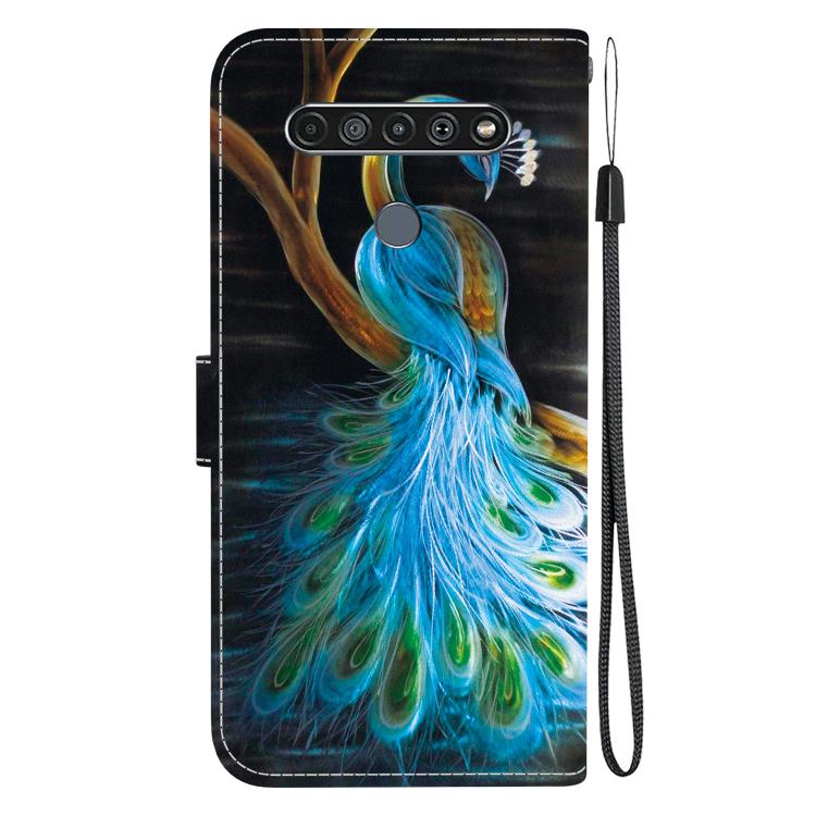 Funda de Cuero LG K61 con Dibujo de Colores y Textura de Cristal (Pavo Real)