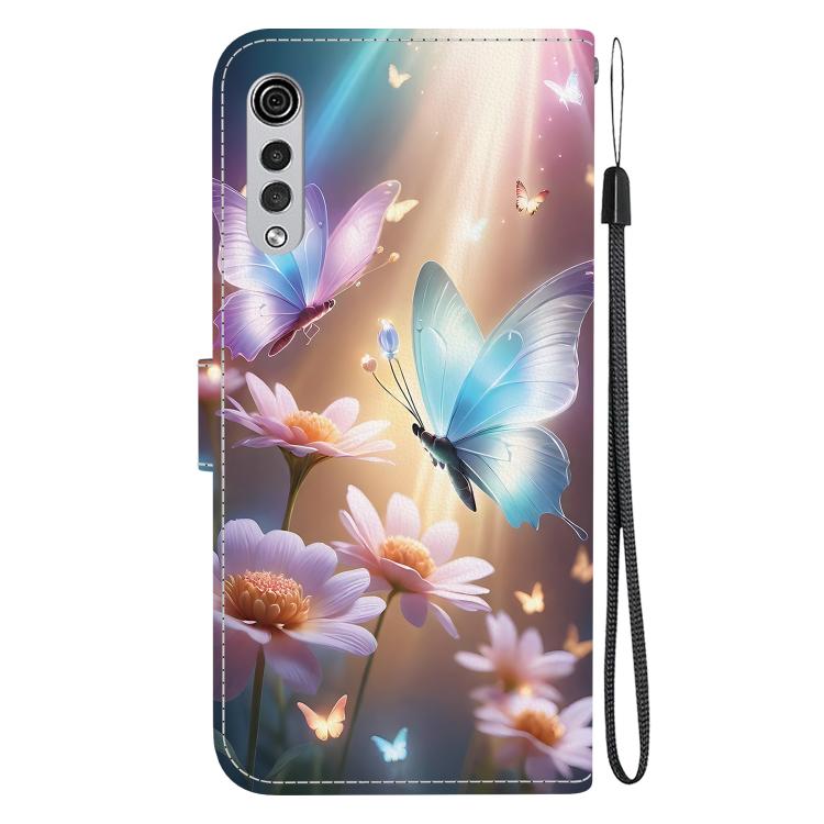 Funda de Cuero para LG Velvet 5G/G9 4G con Dibujo de Colores y Textura de Cristal (Mariposa, Amor y Flores)