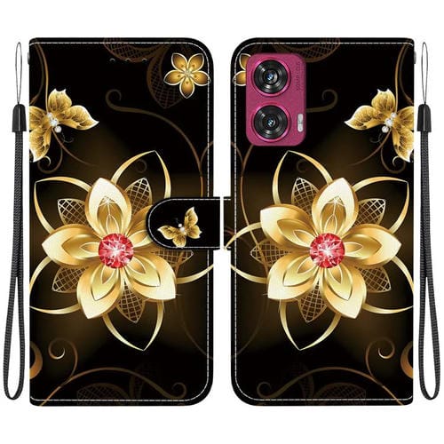 Funda de Cuero Motorola Edge 50 Fusion con Dibujo de Colores y Textura de Cristal (Flor Dorada)