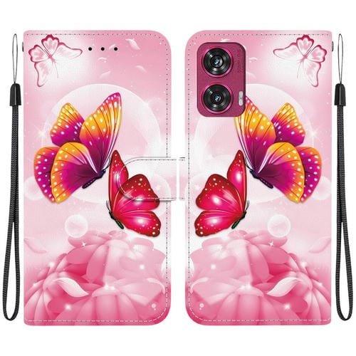 Funda de Cuero Motorola Edge 50 Fusion con Dibujo de Colores y Textura de Cristal (Mariposas Rosas)