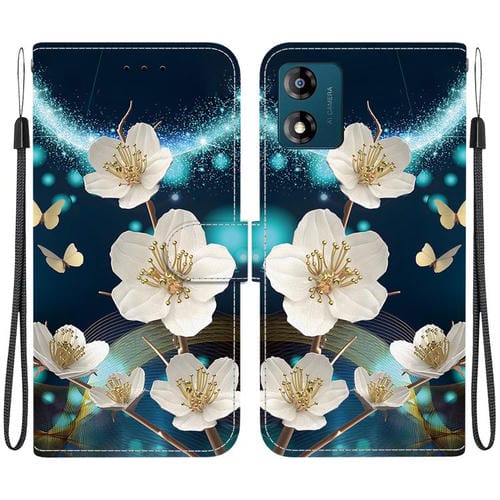 Funda de Cuero Motorola Moto E13 con Dibujo de Colores y Textura de Cristal (Magnolia)