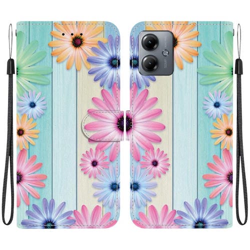 Funda de Cuero Motorola Moto G14 con Dibujo de Colores y Textura de Cristal (Girasoles)