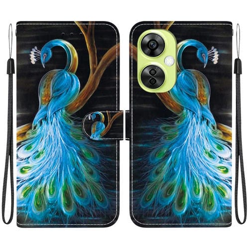 Funda de Cuero con Dibujo y Textura de Cristal para OnePlus Nord CE 3 Lite/N30 (Pavo Real)