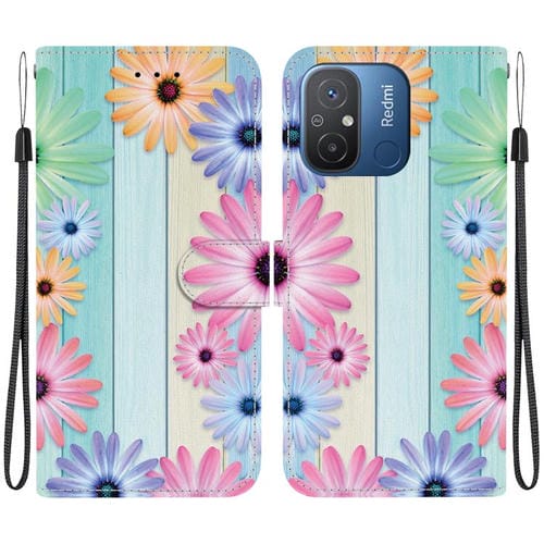 Funda de Cuero con Dibujo de Colores y Textura de Cristal para Redmi 12C/11A (Girasoles)