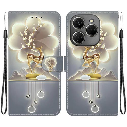 Funda de Cuero para Tecno Spark 20 Pro con Dibujo de Colores y Textura de Cristal (Ciervo Sika)