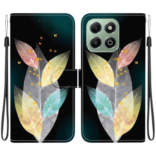 Funda de Cuero para Honor X6B con Dibujo de Colores y Textura de Cristal (Hojas de Colores)