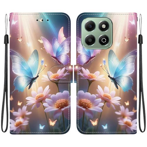 Funda de Cuero para Honor X6B con Dibujo de Colores y Textura de Cristal (Mariposa, Amor y Flores)
