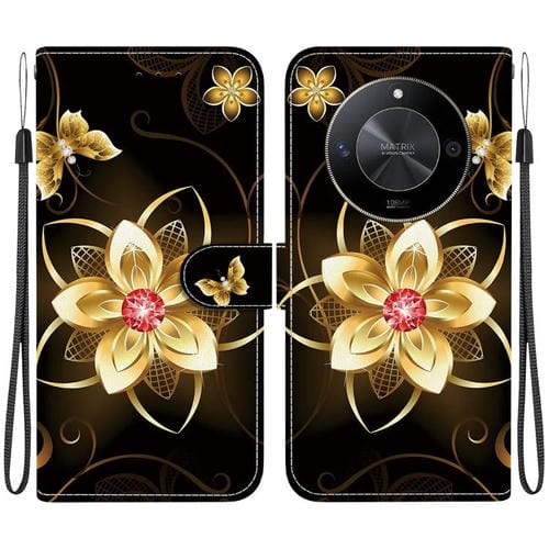 Funda de Cuero para Honor X9B/Magic6 Lite con Dibujo de Colores y Textura de Cristal (Flor Dorada)