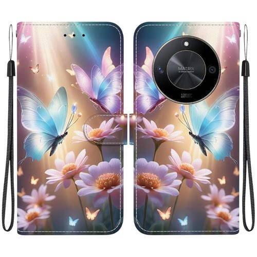 Funda de Cuero Honor X9B Magic6 Lite con Dibujo Colores y Textura Cristal (Mariposa, Amor y Flores)