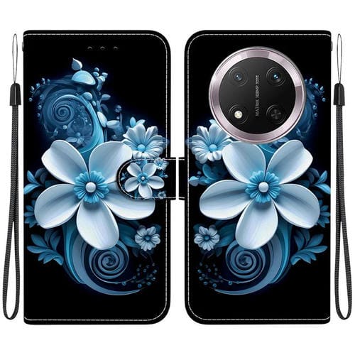 Funda de Cuero para Honor X9C con Dibujo y Textura de Cristal (Orquídea Negra)
