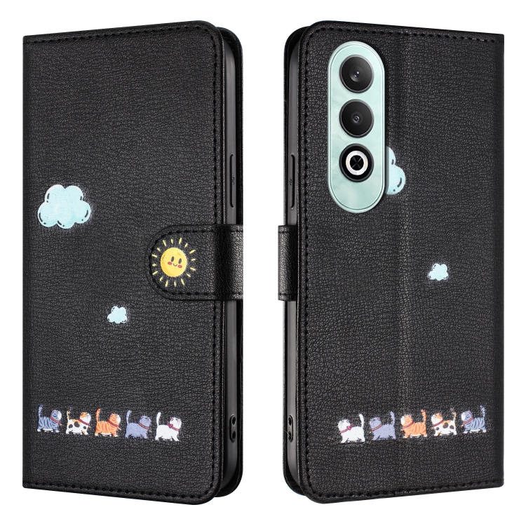 Funda de Cuero para OnePlus Nord Ce4 5G con Dibujos de Gatos (Negra)