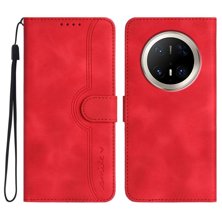 Funda de Cuero con Diseño de Corazón para Huawei Mate 70 Pro / Mate 70 Pro+ (Rojo)