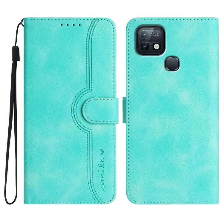Funda de Cuero con Diseño de Corazón para Teléfono Infinix Hot 10I (Azul Claro)