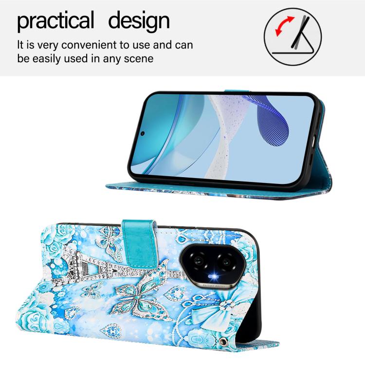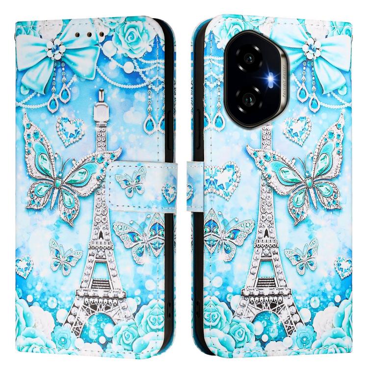 Funda de Cuero para Teléfono Honor 300 con Dibujo Mariposa en Forma de Torre (Liso)
