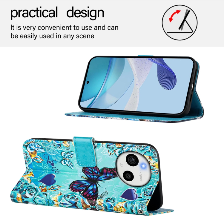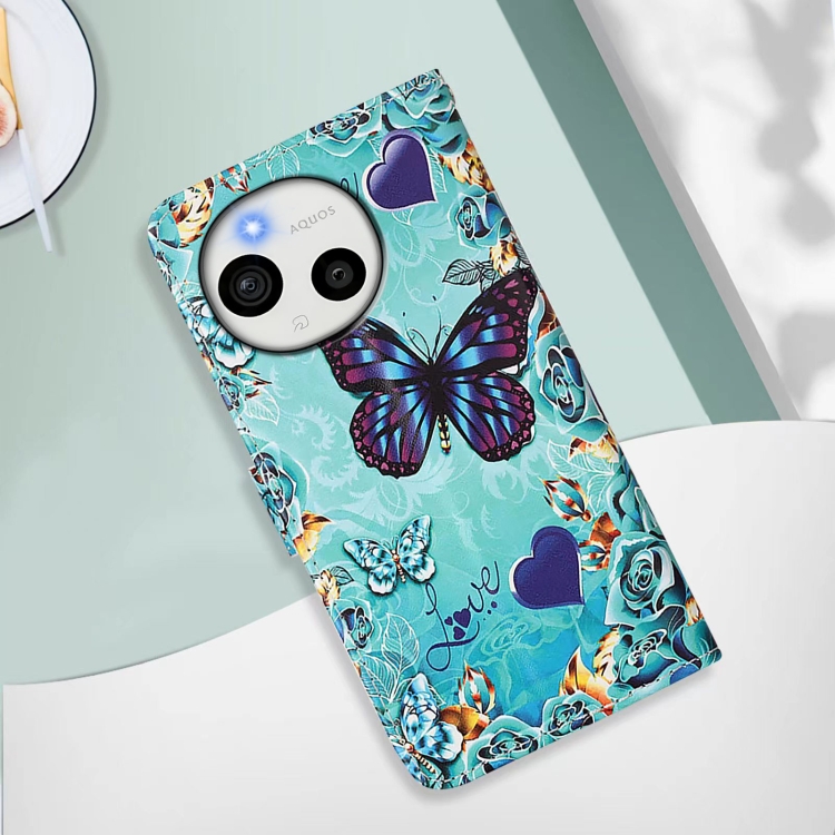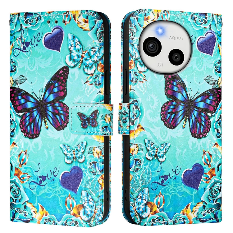 Funda de Cuero para Sharp Aquos Sense9 Plus con Diseño de Dibujos de Colores y Tejido Liso (Mariposa de Amor)