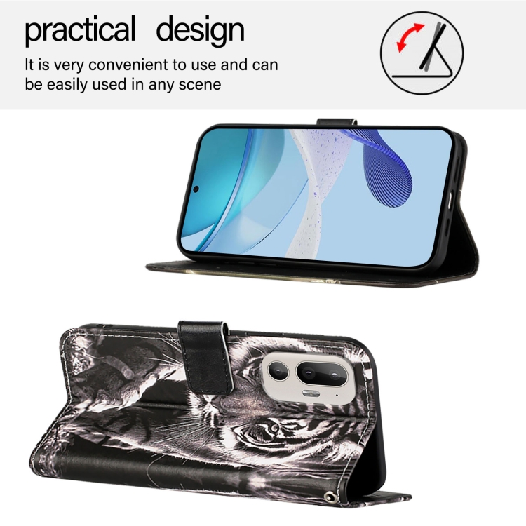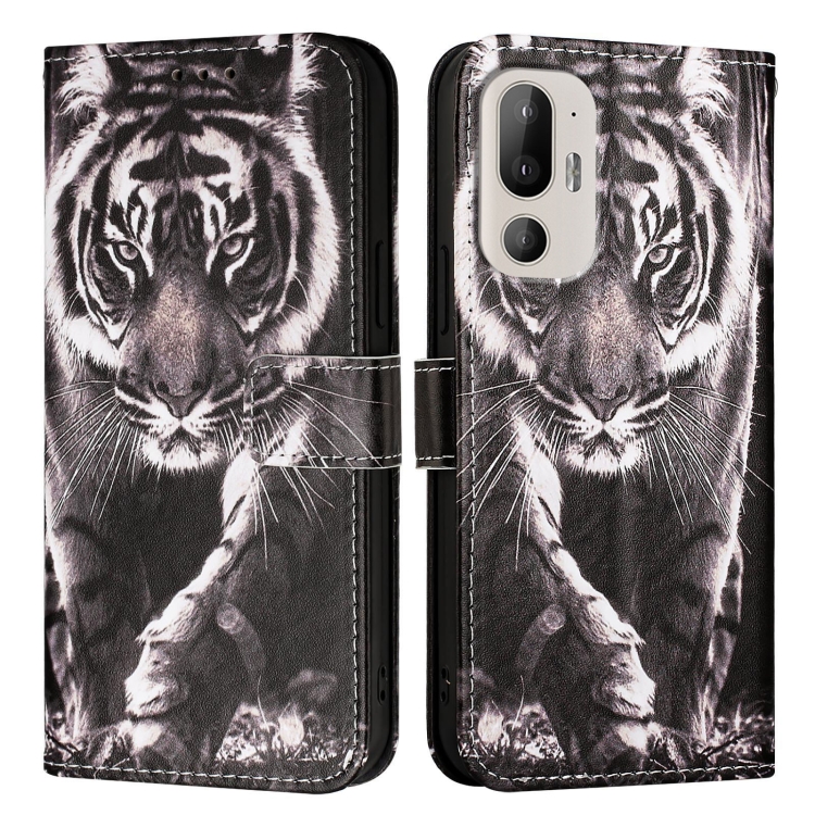 Funda de Cuero para HTC U24 Pro con Diseño de Tigre Blanco y Negro (Liso)