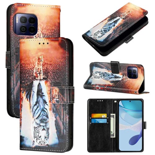 Funda de Cuero para T-Mobile Revvl 7 Pro 5G con Diseño de Gatos y Tigres