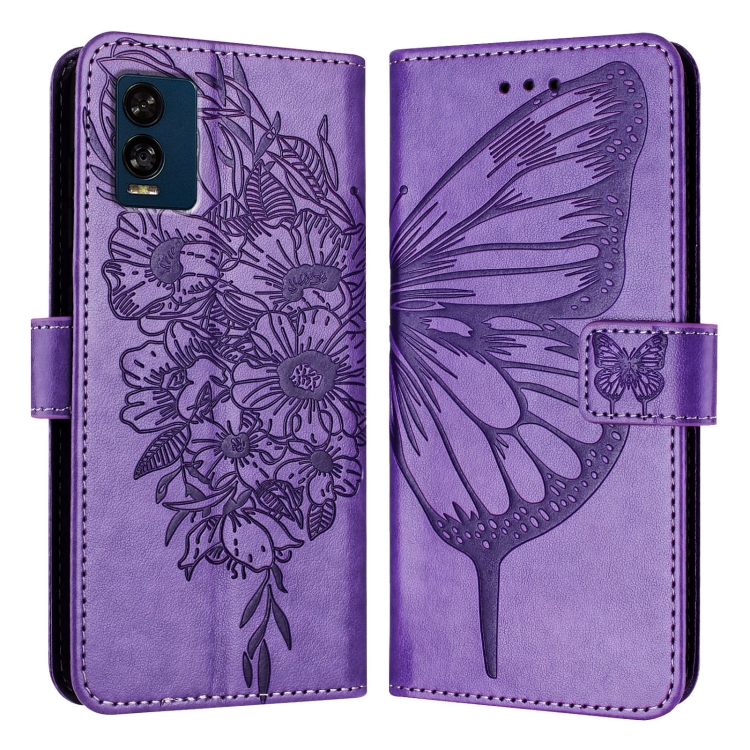 Funda de Cuero Blu View Speed 5G Diseño Mariposa en Relieve (Morado Claro)