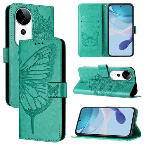 Funda de Cuero con Diseño de Mariposa En Relieve para El Teléfono Vivo S19 Pro (Verde)