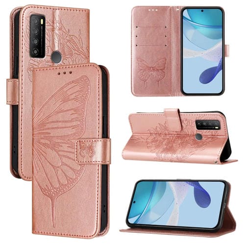 Funda de Cuero para TCL 30 XL T701Dl con Diseño de Mariposa En Relieve (Oro Rosa)
