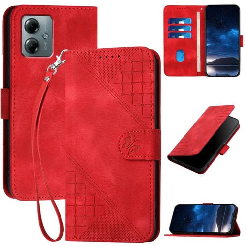Funda de Cuero Motorola Moto G Play 2025 y G Power 2025 con Diseño Mariposa y Cordón (Rojo)