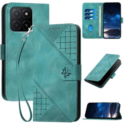 Funda de Cuero para Honor X5B y X5B Plus con Diseño de Mariposas en Relieve y Cordón (Azul Claro)