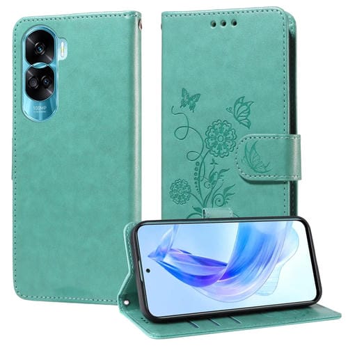 Funda de Cuero con Mariposas y Flores en Relieve para Honor X50I 5G/90 Lite (Verde)