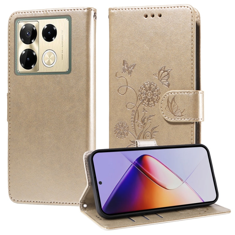 Funda de Cuero con Diseño de Mariposas y Flores en Relieve para Infinix Note 40 Pro 4G/5G/Pro+ (Dorada)