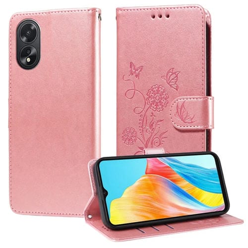 Funda de Cuero con Diseño de Mariposas y Flores En Relieve para Oppo A38 4G Global/A18 4G (Oro Rosa)