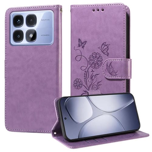 Funda de Cuero con Diseño de Mariposas y Flores En Relieve para Redmi K70 Ultra (Morado)