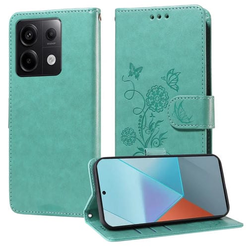 Funda de Cuero con Diseño de Mariposas y Flores En Relieve para Xiaomi Poco X6 5G (Verde)