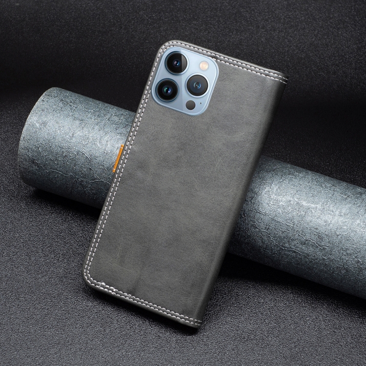 Funda de Cuero para iPhone 13 Pro con Doble Hilo de Coser (Negro)