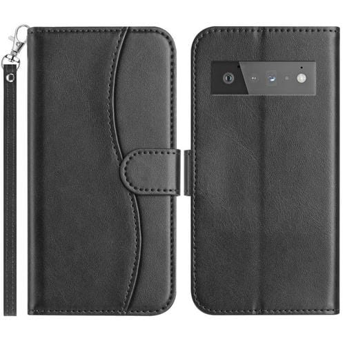 Funda de Cuero con Doble Pliegue en Forma de S para Google Pixel 6 Pro (Negra)