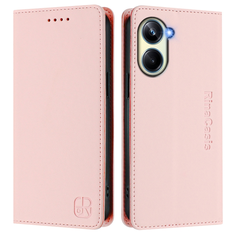 Funda de Cuero con Doble Pliegue y Succión Magnética para Realme 10 Pro 5G Rc01 (Rosa)