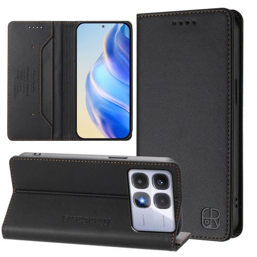 Funda de Cuero con Doble Pliegue y Succión Magnética para Redmi K70 Ultra 5G Global Rc01 (Negra)