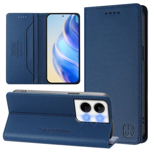 Funda de Cuero con Doble Pliegue y Succión Magnética Rfid para Oppo Reno9 5G / Reno9 Pro 5G Rc01 (Azul Oscuro)