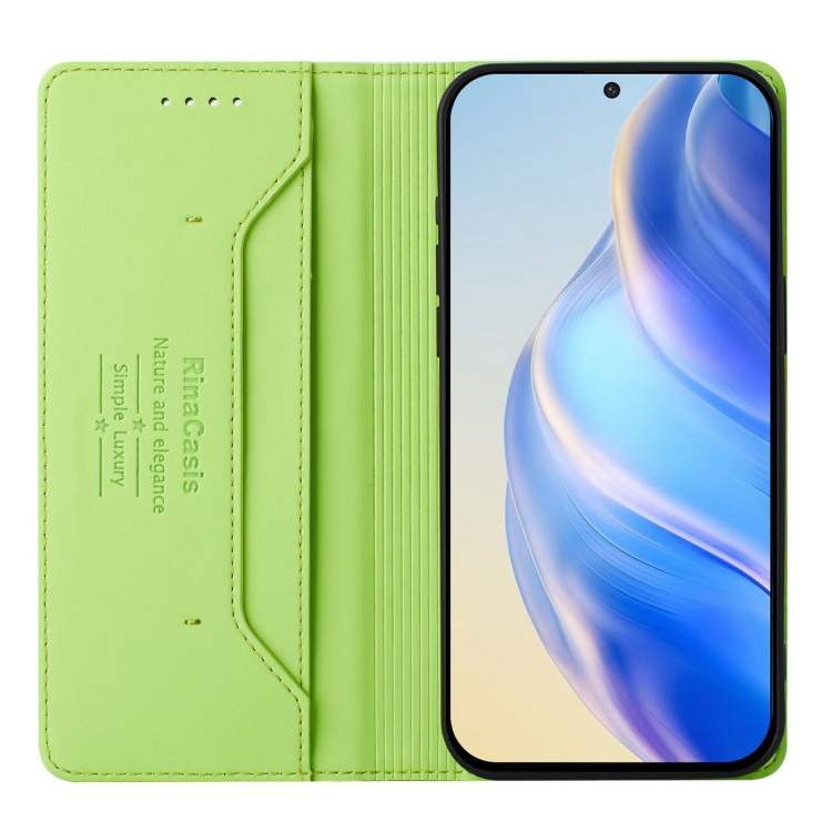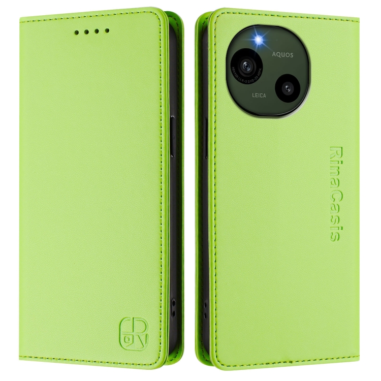 Funda de Cuero Rfid para Sharp Aquos R9 Sh-51E Rc01 con Doble Pliegue y Succión Magnética (Verde Hierba)