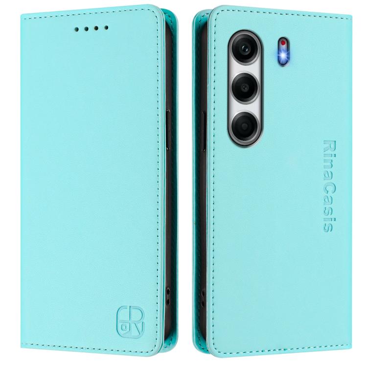 Funda de Cuero con Doble Pliegue y Succión Magnética RFID para Tecno Camon 40 4G Rc01 (Verde Menta)