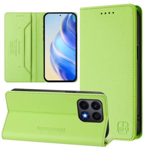 Funda de Cuero Rfid para Honor X8A Global Rc01 con Doble Pliegue y Succión Magnética (Verde Hierba)