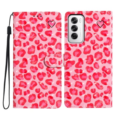 Funda de Cuero con Estampado 3D para Teléfono Oppo Reno12 Global (Estampado de Leopardo Rosa)