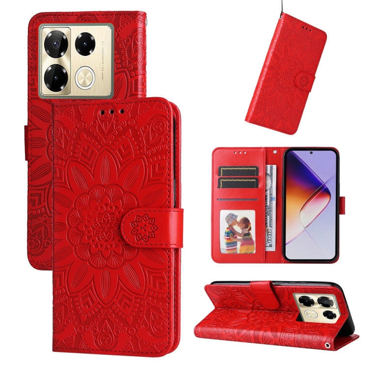 Funda de Cuero con Estampado de Girasoles en Relieve para Infinix Note 40 Pro 4G/5G y Pro+ (Rojo)