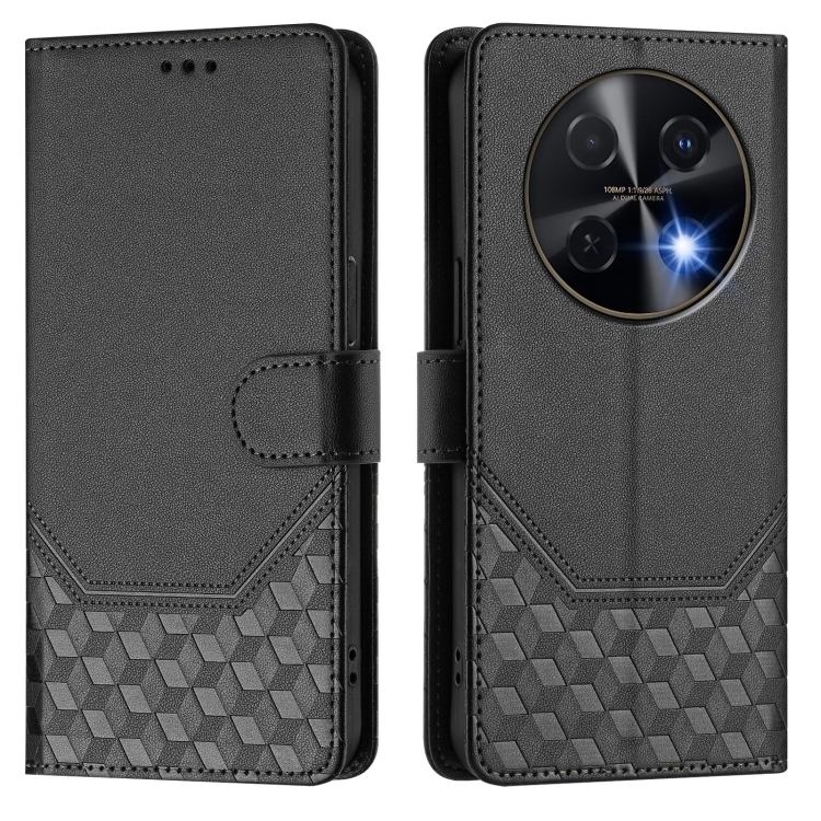 Funda de Cuero con Estampado de Panal RFID para Huawei Nova 12I 4G (Negra)