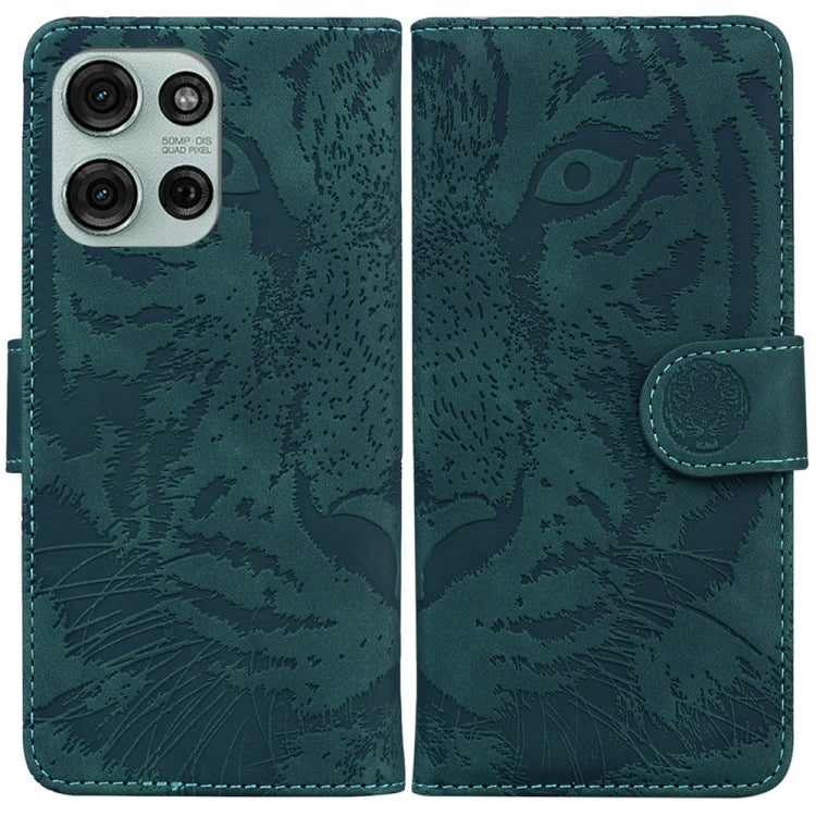 Funda de Cuero Motorola Moto G75 5G con Estampado de Tigre (Verde)