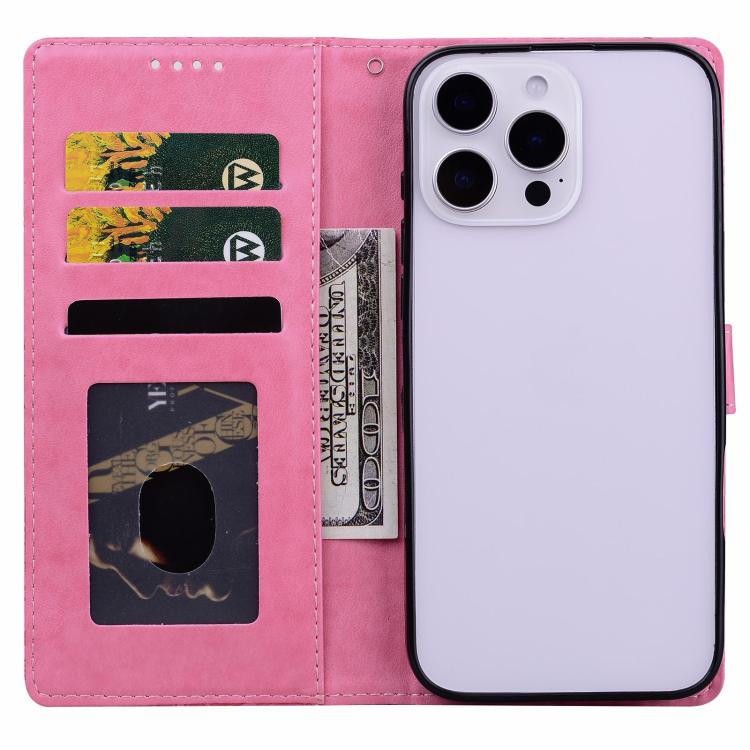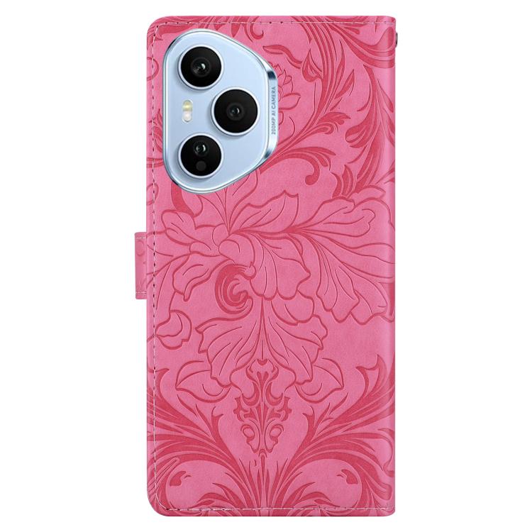 Funda de cuero con estampado floral en relieve para Honor 400 Pro Global (160,8 mm) (rosa)