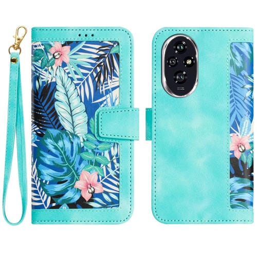 Funda de Cuero For Honor 200 con Estampado Floral y Cordón (Verde)