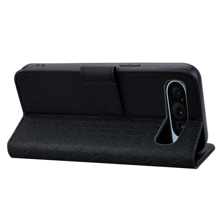 Funda de Cuero con Hebilla de Diamante para Google Pixel 9 Pro Business con Cordón (Negro)