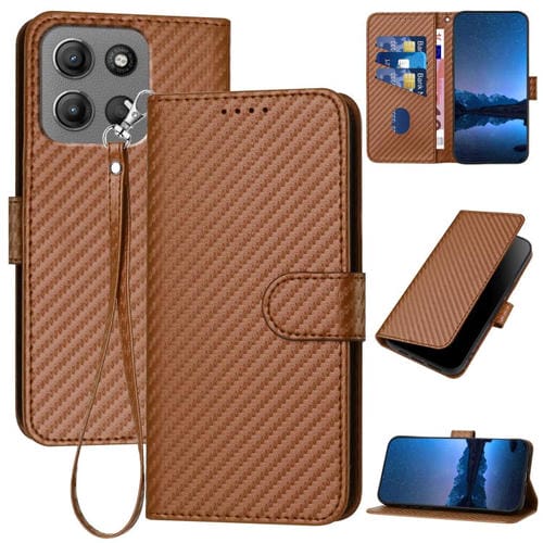 Funda de Cuero con Hebilla de Fibra de Carbono y Cordón para Motorola Moto G15 Yx0070 (Café)