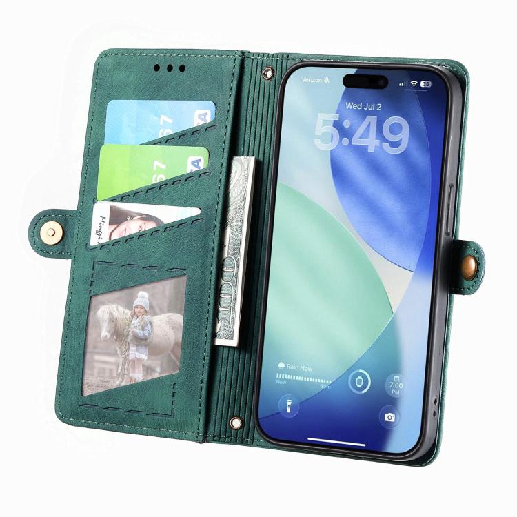 Funda de cuero con hebilla lateral y cremallera geométrica para iPhone 17 Pro Max (verde)