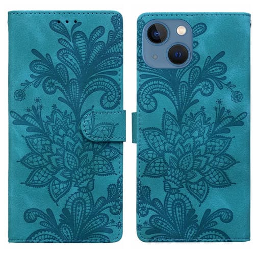 Funda de Cuero para iPhone 15 con Hebilla Magnética y Diseño Floral en Relieve (Verde)