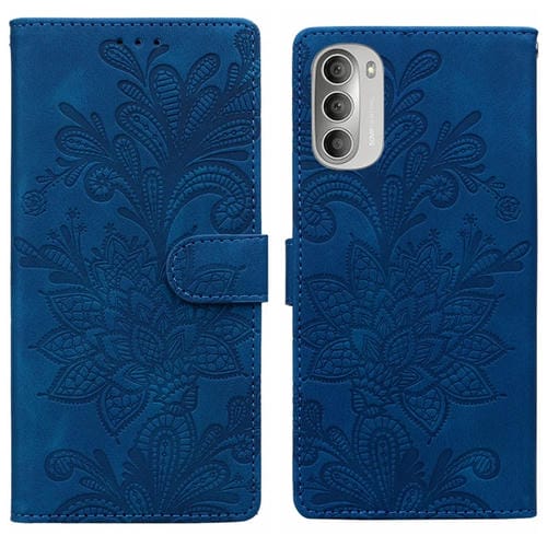 Funda de Cuero con Hebilla Magnética y Diseño Floral para Motorola Moto G51 5G (Azul)
